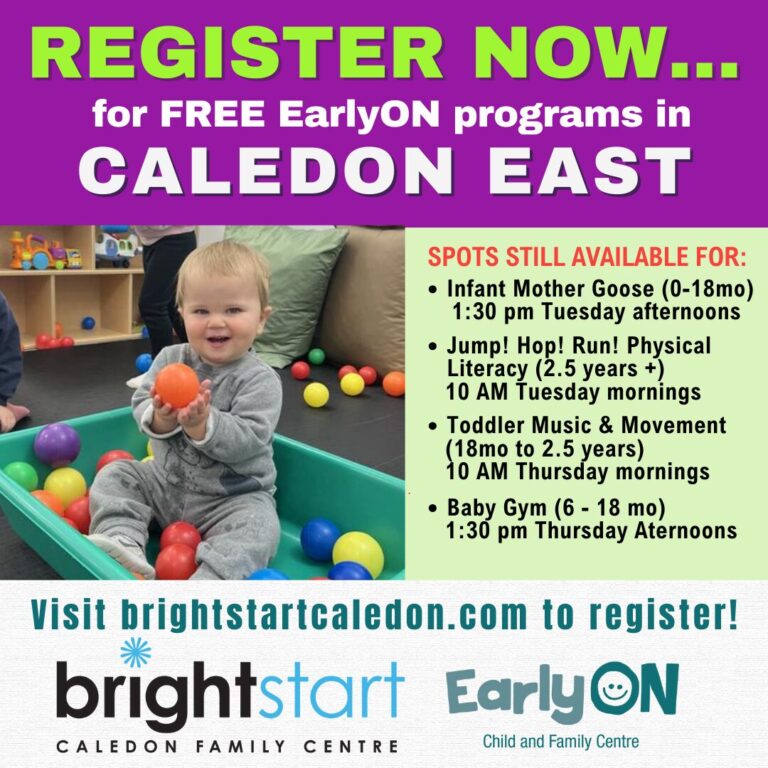 BrightStart Caledon is a non-profit community service organization that provides FREE, quality, results-based early years programs and family supports for children, parents and caregivers in Caledon and the surrounding areas.